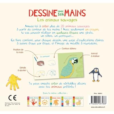 Amuse-toi à créer plus de 20 animaux sauvages à partir du contour de tes mains ! Avec seulement un crayon, tu vas pouvoir réaliser en quelques étapes une girafe, un zèbre, un perroquet…Tu peux ensuite créer de véritables décors avec tous les animaux que tu préfères ! Ce livre contient, pour chaque animal, une page d'explications claires à suivre, étape par étape, et l'image du modèle à reproduire. Tu peux ensuite créer de véritables décors avec tes animaux préférés !Retrouve dans la même collection : Dessine avec tes mains - Peins avec tes doigts - Peins avec tes mains - Dessine avec tes mains : Les héros des contes - Dessine avec tes mains : Les animaux de la ferme