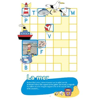 Ma fille de 7 ans fait ces mots fléchés avec un grand plaisir. Chaque mot est défini par une illustration et chaque page a un thème, comme la mer. Quelques fois l'enfant a besoin d'aide comme pour le mot fléché du désert (il faut connaître oasis ou fennec!) mais cela permet de passer un bon moment parent enfant. C'est un bon jeu d'orthographe aussi puisque l'enfant va devoir orthographier les mots correctement, y compris mettre un s si l'illustration comporte 2 vaches par exemple. L'enfant peut s'auto-corriger puisqu'il y a les solutions à la fin.