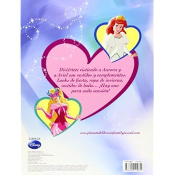 Diviértete vistiendo a Aurora y a Ariel con vestidos y complementos. Look de fiesta, ropa de invierno, vestidos de boda… ¡hay uno para cada ocasión! Incluye ocho vestidos troquelados y dos figuras de cartulina de las princesas.